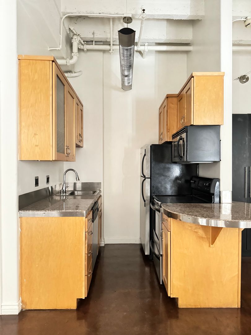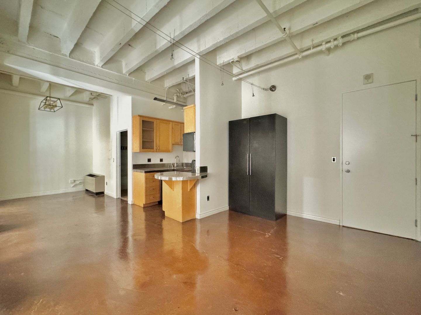 interior facing open loft with 1 bathroom