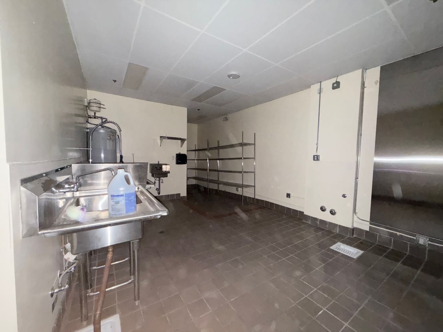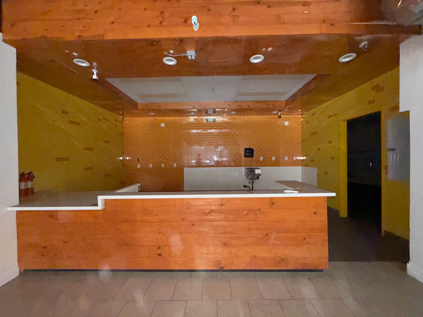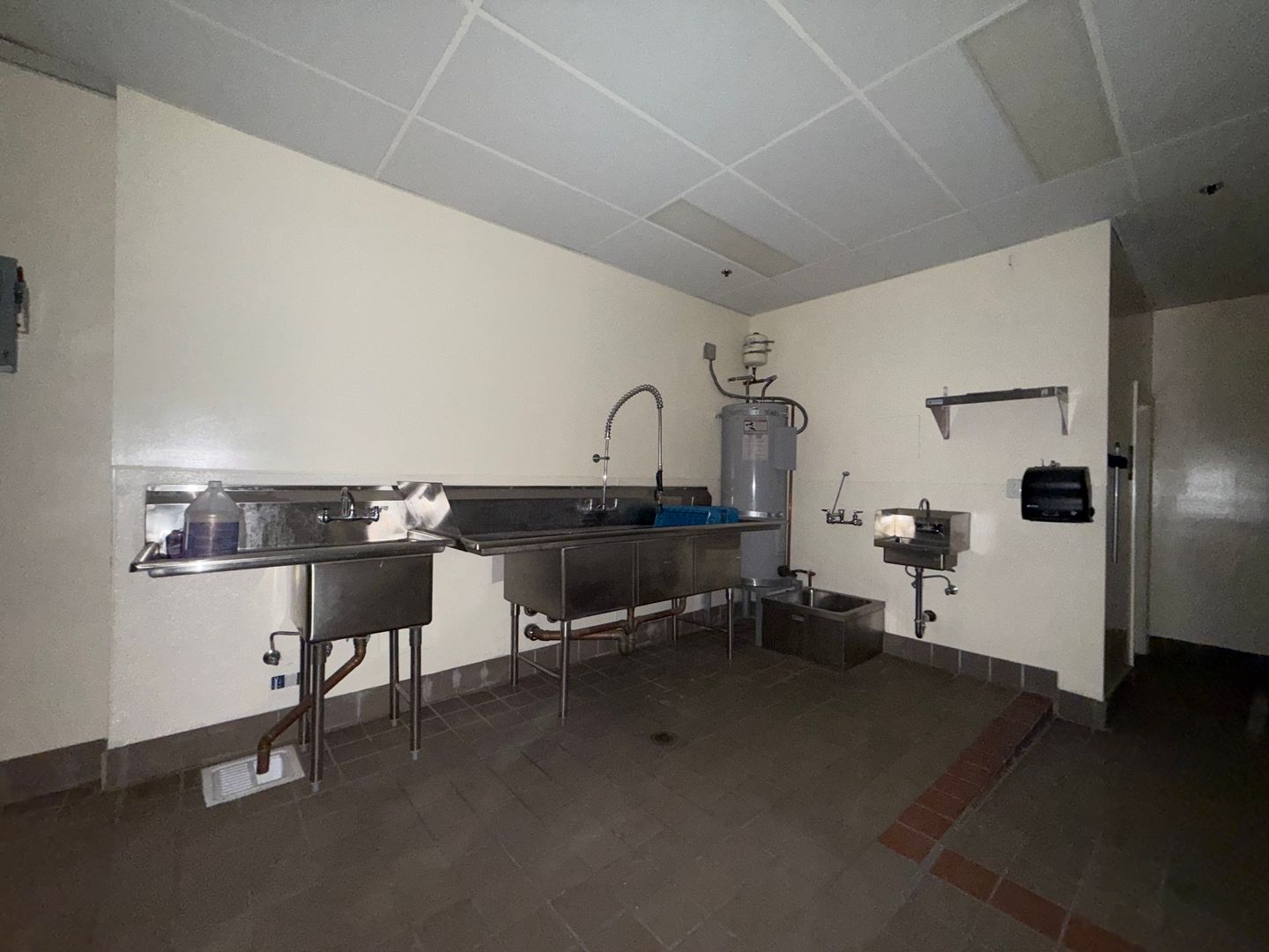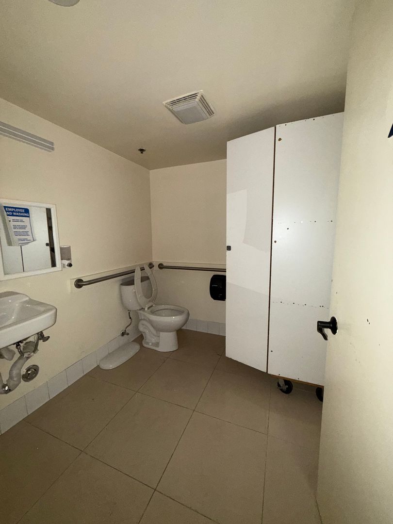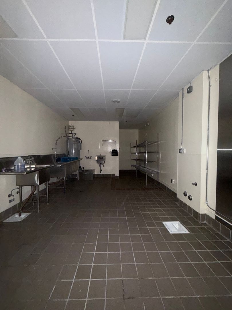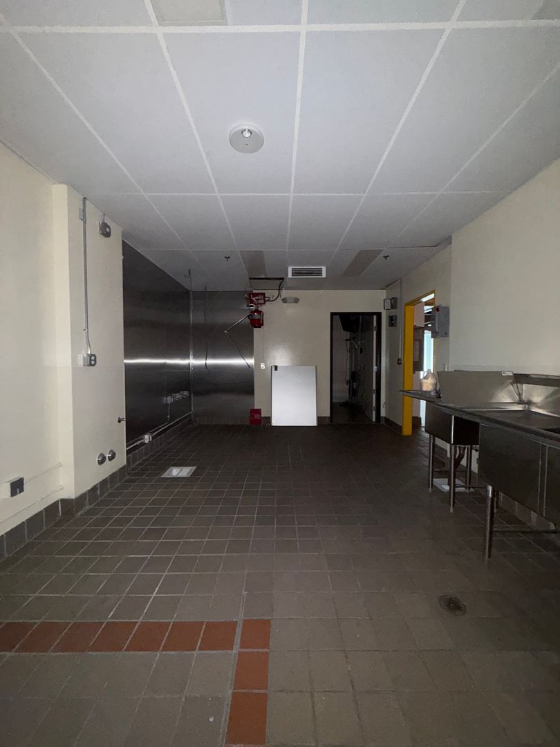 Full kitchen and bar features hand sink, prep sink, dish sink and 3 compartment sink. There is also a new water heater, extensive ether-net cabling, recess and track lighting, cabinets and built in bar. Back area features an office and private restroom. Modified Gross lease, no Triple Net!
